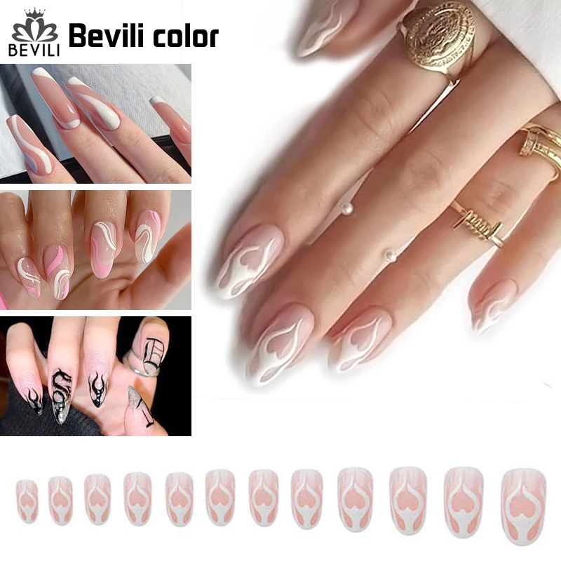Белые волнистые телесные розовые накладные ногти с длинным нажатием...