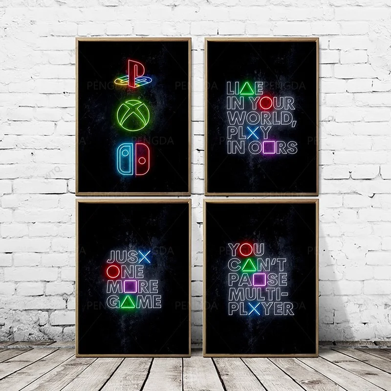 Игровой постер, картина с неоновым светом, холст, картина, черный фон, Украшение стен, искусство, украшение для комнаты, украшение для дома
