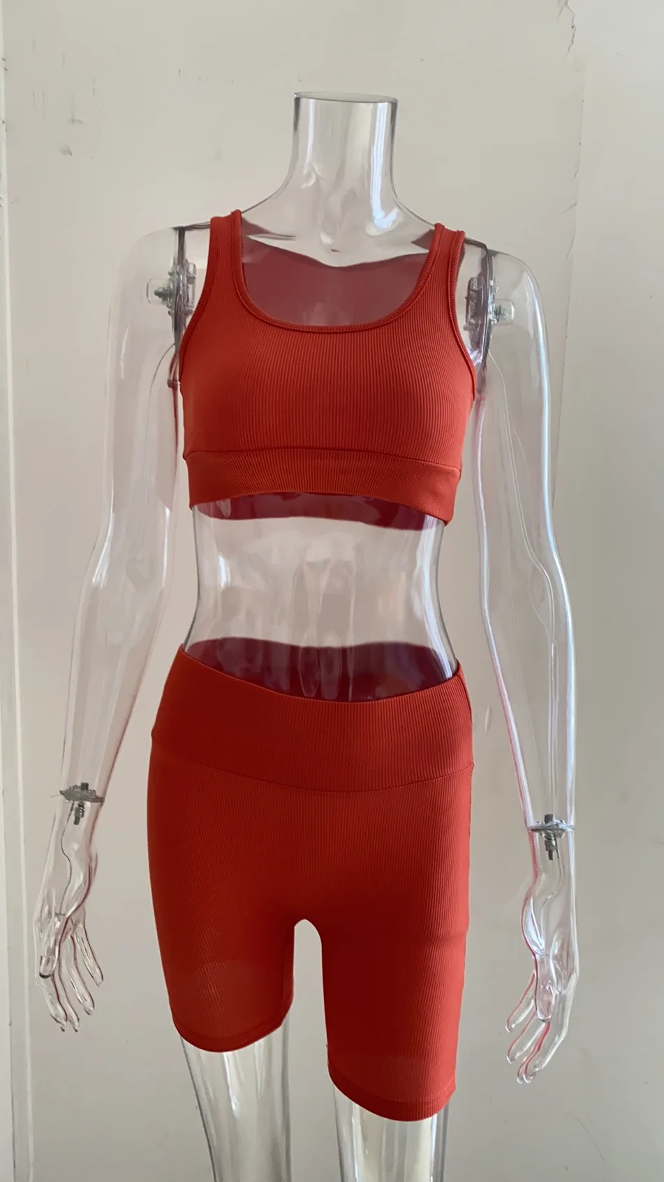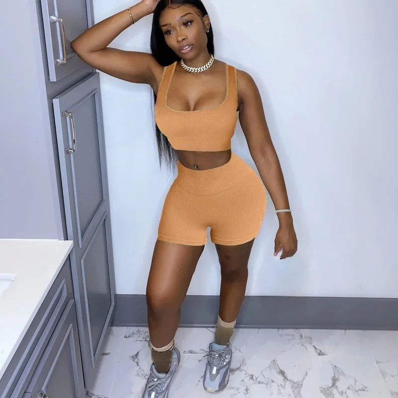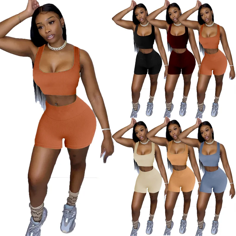 Повседневный комплект из 2 предметов, Женский облегающий спортивный костюм, Однотонный женский комплект из топа и спортивных шорт, летняя одежда для женщин