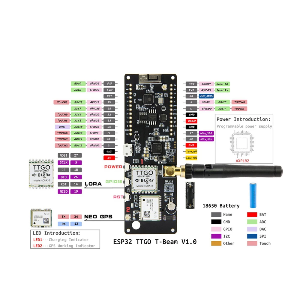 Беспроводной Bluetooth-модуль T-Beam V1.0 ESP32, стандартный держатель батареи SMA LORA 32, 430 МГц
