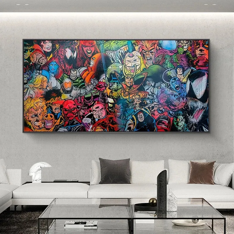 Картина на холсте с героями мультфильмов Marvel, Человек-паук, плак...