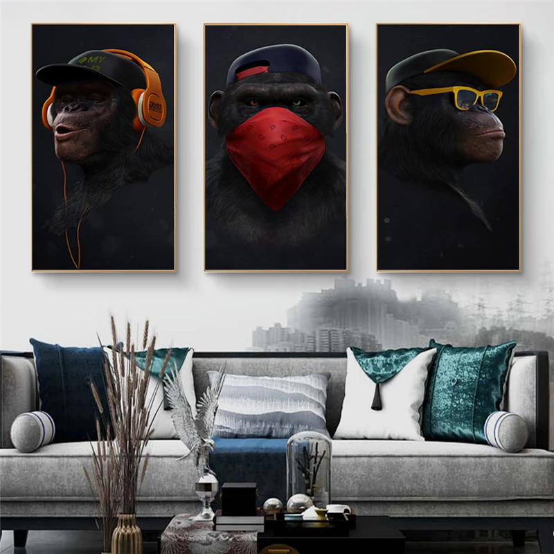 Современные курительные очки музыка хип-хоп обезьяна большой плакат...