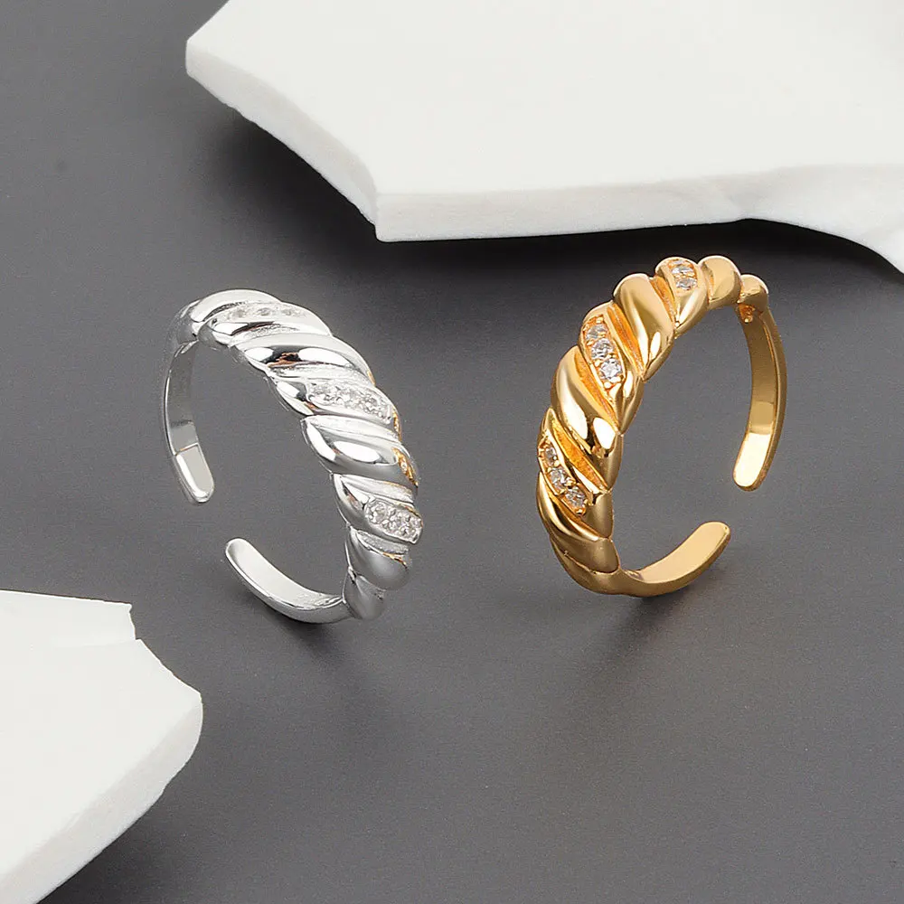 QMCOCO 925 Серебряное циркониевое саржевое круассаны кольцо 2021 но...