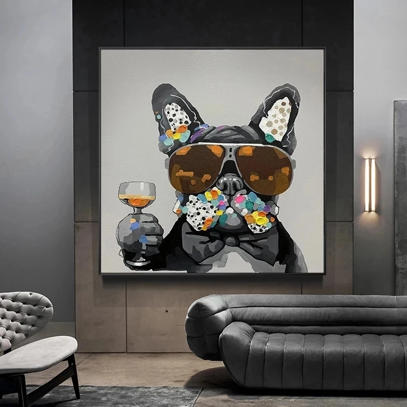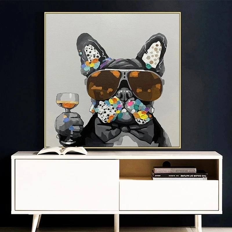 Граффити, Современная собака в солнцезащитных очках, холст, постеры...