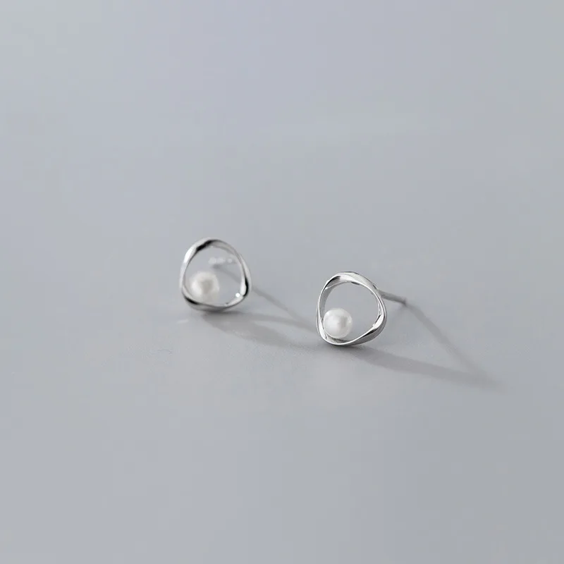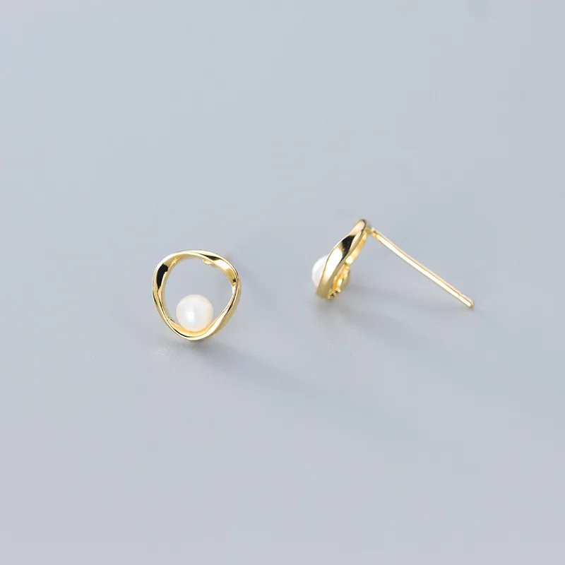 LKO настоящее серебро 925 пробы 100% модные милые жемчужные серьги-гвоздики для женщин вечерние украшения милые полые серьги-гвоздики для девочек подарок