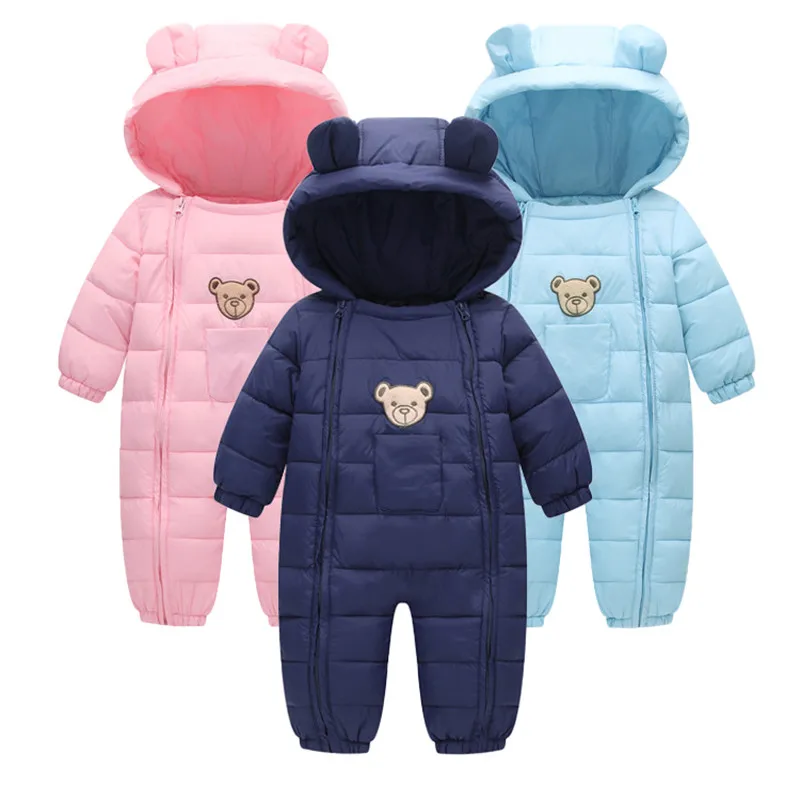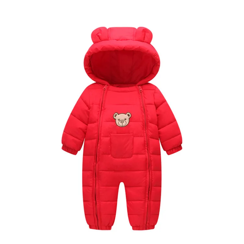 Одежда для маленьких мальчиков, зимний комбинезон для новорожденных, Детская пуховая куртка, детский цельный комбинезон с мультяшным медведем для девочек, детский комбинезон, уличная одежда