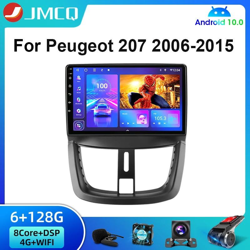 Автомагнитола JMCQ, 2 Din, Android 11, для Peugeot 207 207CC 2006 - 2010 2011 2012 2013 2014 2015, мультимедийный видеоплеер, DVD, 4G