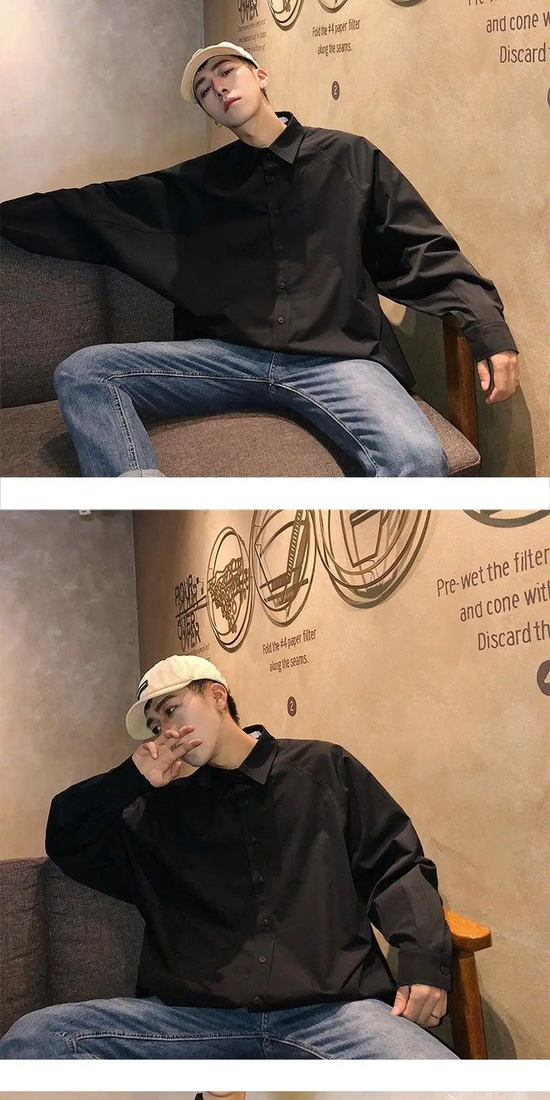 Шикарная Корейская мужская рубашка, свободная простая Однотонная рубашка оверсайз с длинным рукавом, Повседневная универсальная белая черная блузка унисекс, крутая уличная одежда
