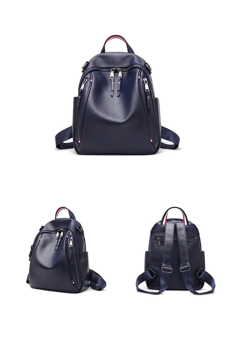 Модный женский синий рюкзак из натуральной кожи 2021, вместительные Сумки из натуральной коровьей кожи для женщин, школьная сумка