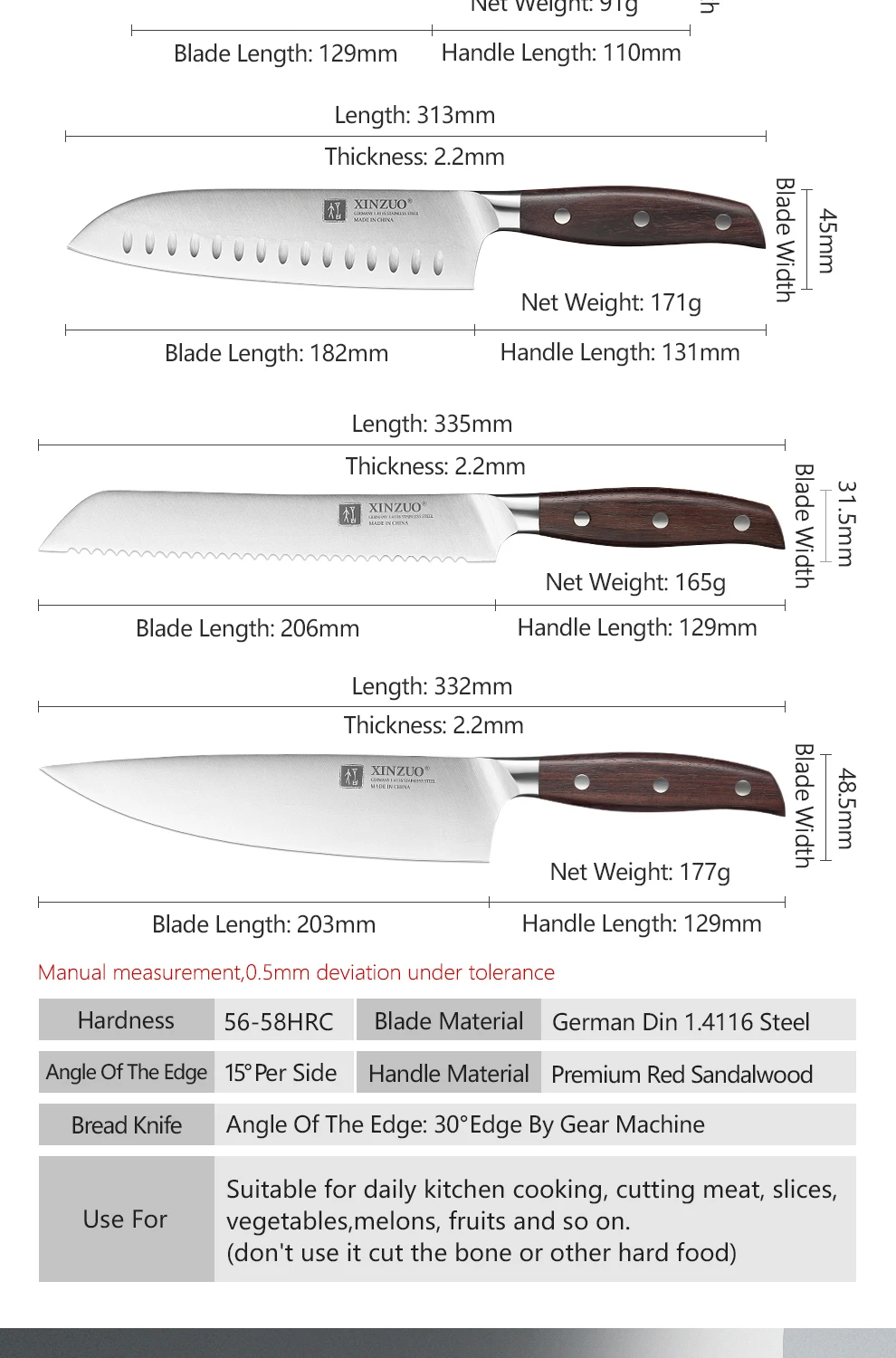 Нож сандалового дерева XINZUO, 5 шт наборы ножей, нержавеющая сталь...