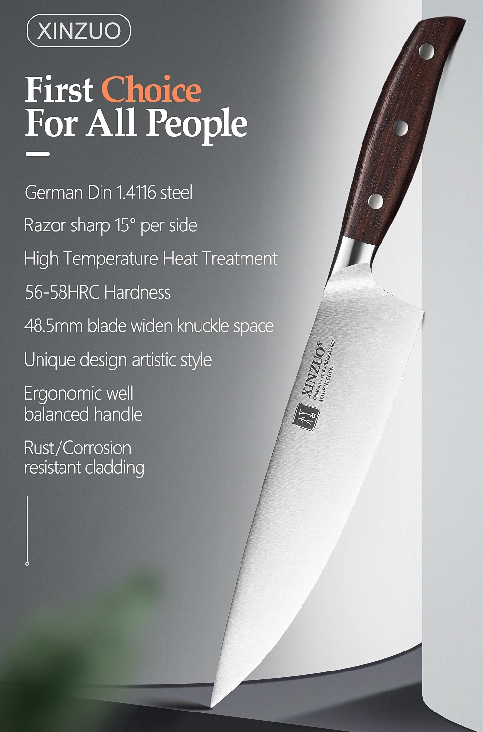 Нож шеф-повара XINZUO, 8 дюймов, немецкая сталь DIN 1,4116, кухонны...