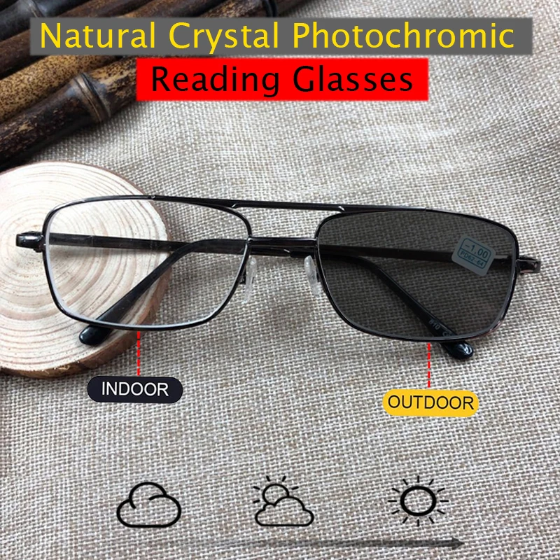 Фотохромные очки для чтения с натуральными кристаллами для мужчин и женщин, очки с защитой от синего излучения и усталости, солнцезащитные очки для чтения на открытом воздухе