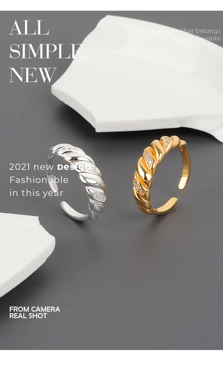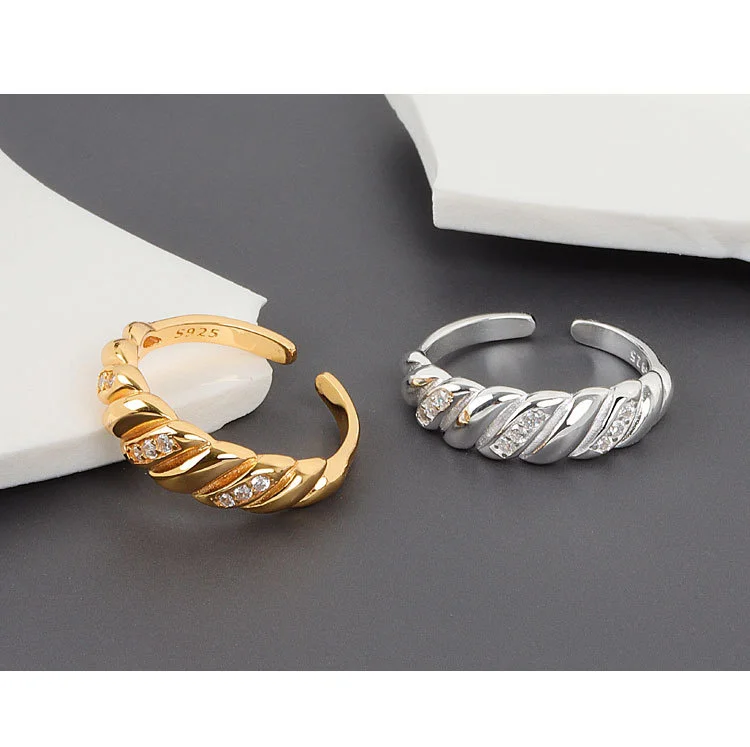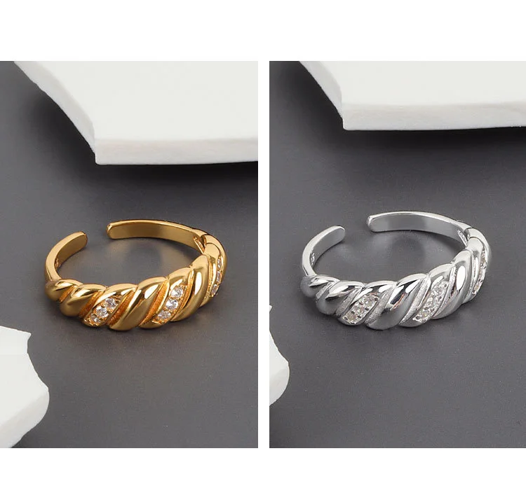 QMCOCO 925 Серебряное циркониевое саржевое круассаны кольцо 2021 новый креативный дизайн Геометрические крученые широкие кольца для женщин аксессуары вечерние