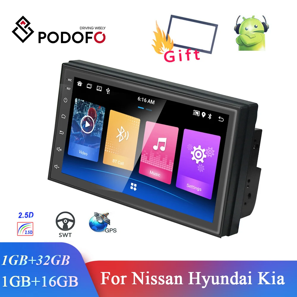 Автомагнитола Podofo, универсальный мультимедийный видеоплеер на Android, с GPS, для Volkswagen, Nissan, Hyundai, Kia, Toyota, типоразмер 2 Din