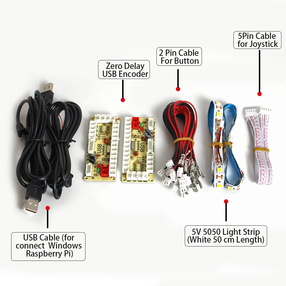 Аркадный шкаф с нулевой задержкой, набор сделай сам, светодиодная полоса 5 В, копия SANWA, прозрачная кнопка, джойстик, 2 игрока, монета, USB, ПК, Raspberry Pi