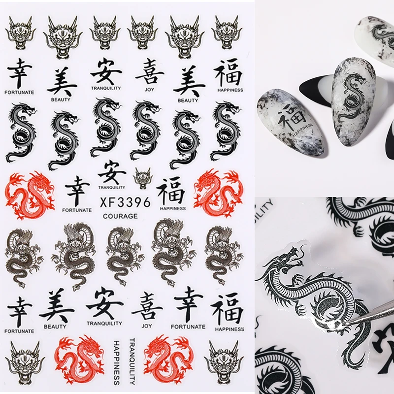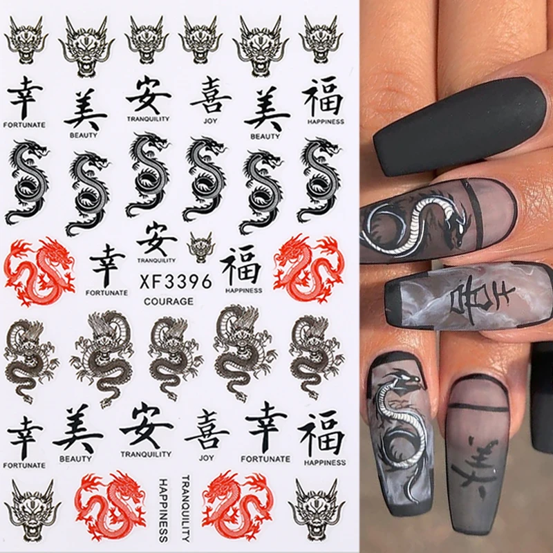 Красные, черные, красочные 3D наклейки с изображением дракона, для женщин, для ногтевого дизайна, слайдер для гель-лака, временная наклейка, украшения для на ногти для маникюра