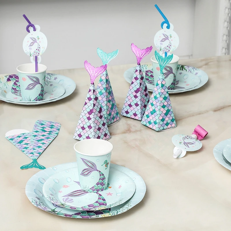 Одноразовая посуда с блестками в виде хвоста русалки, для детского ...
