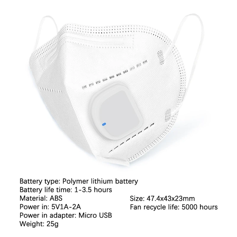 Особенности:1. Маска, которая фильтрует опасные частицы и помогает более гладкому, прохладному дыханию2. Умная система воздушного потока, вентиляция влаги, CO2 и нагревание маски электрическим вентилятором, дыхание в комфорте, и больше никаких туманных очков!3. Многоразовая конструкция модуля, адаптируется к большинству одноразовых масок и тканевых масок на рынке4,10 секунды сборка/разборка, легко и круто5. Односторонние дышащие клапаны, сохраняют вредные частицы, в то время как очень дышащие.6. Отфильтруйте 95% опасных частиц 0,4мкм (воздушно-капельки, пыль, туман, дым, пыльца, ивовой каткин, выхлопных газов автомобиля, микроорганизмов, PM2.5 и т. Д.).7. Легкий дизайн, всего 25 г, работает как магия, но не добавляет объема вашей внешности.8. Стильный дизайн, Обтекаемый корпус, крутой светодиодный светильник, это гаджет geek, а также функциональный продукт для всех людей.