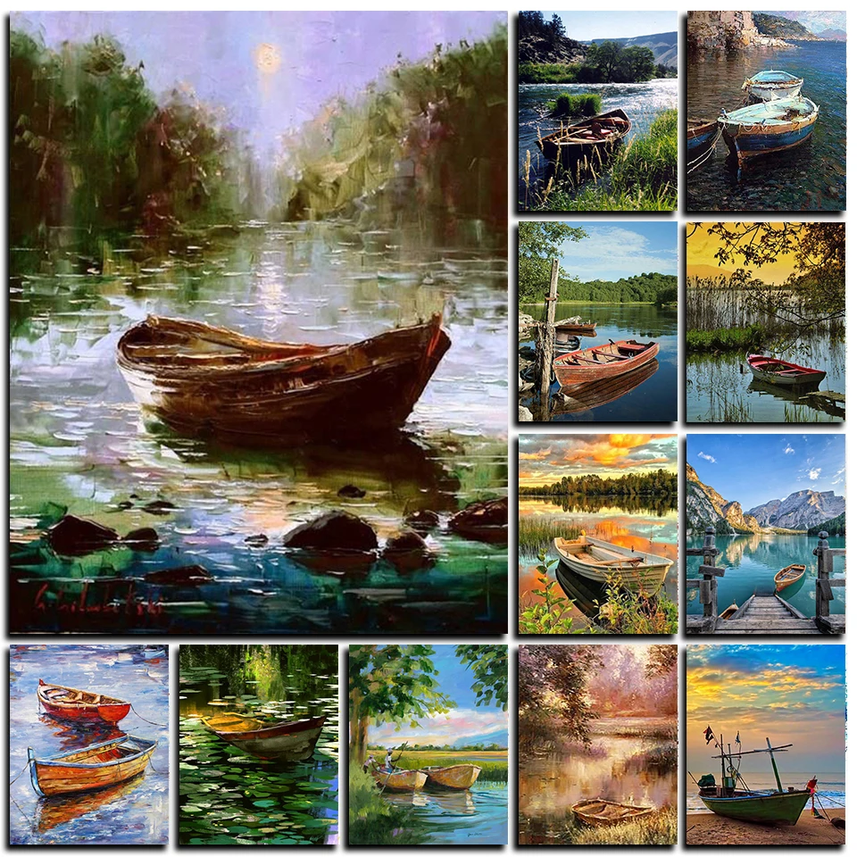 Алмазная вышивка "сделай сам", квадратнаякруглая лодка, пейзаж, кар...