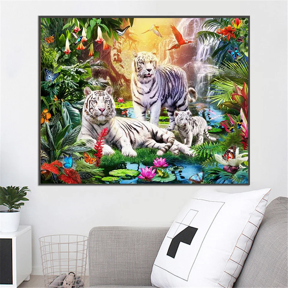 Картина из квадратныхкруглых страз с изображением животных, 5D тигр, Алмазное ремесло, "сделай сам", пейзаж, радуга, Алмазное искусство, "сделай сам", украшение для дома