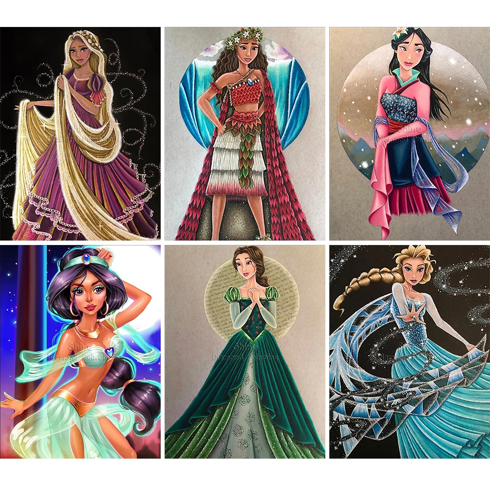 Алмазная живопись, персонажи диснеевских принцесс 5D, искусство, му...