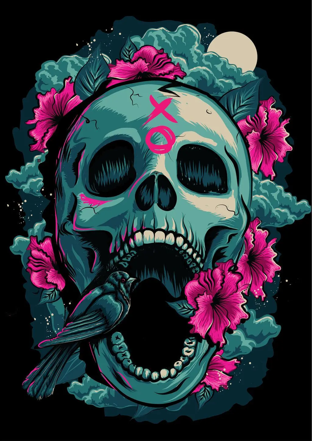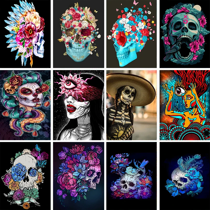 Картина по номерам на холсте, с изображением цветов, черепа, глаз
