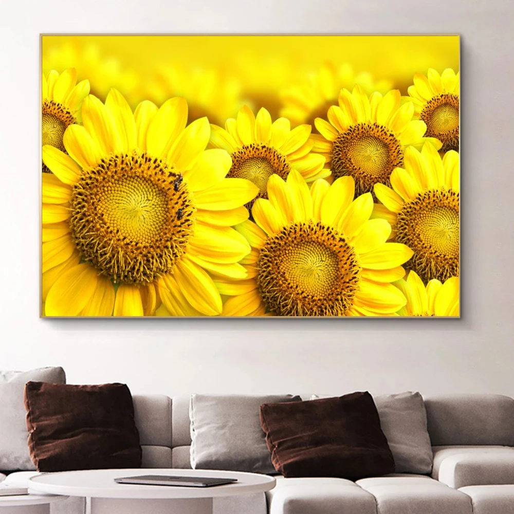 Картина на холсте с подсолнухами, деревенский домашний декор, насте...