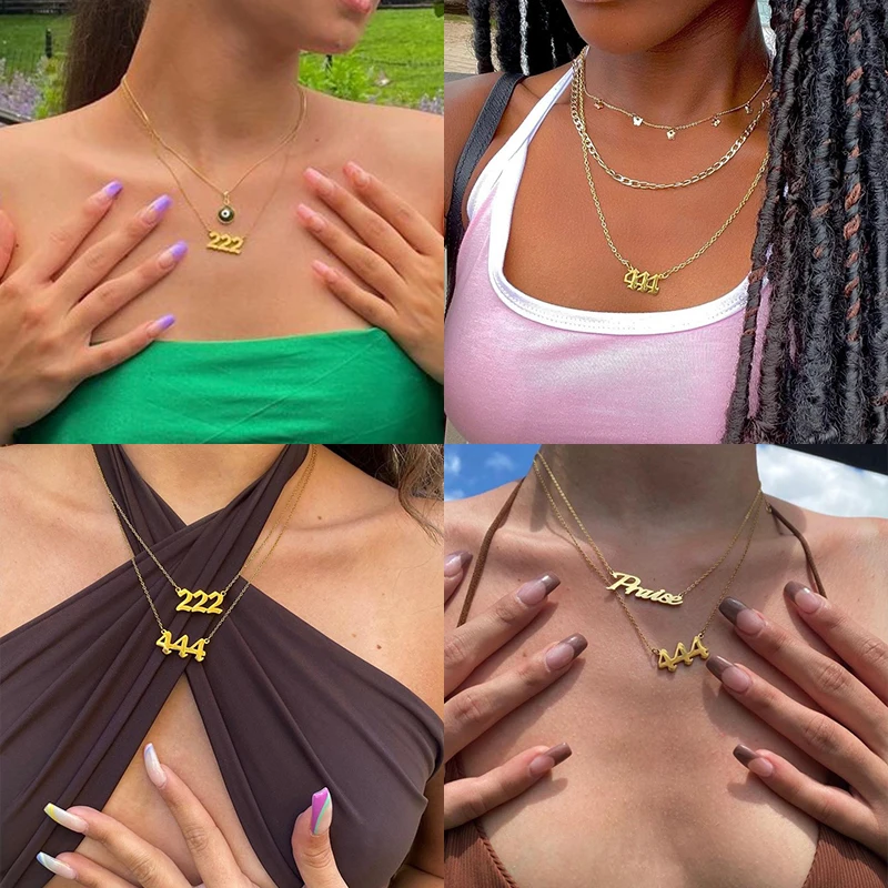 Ожерелье с подвеской Angel Number 111 444 для женщин и мужчин, готическое ожерелье-чокер на цепочке, ювелирные изделия из нержавеющей стали, колье для женщин