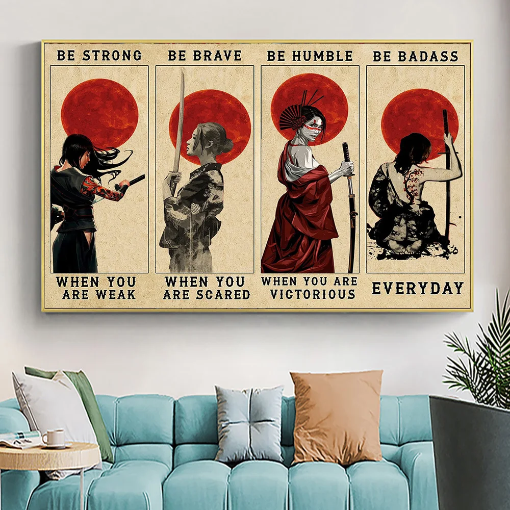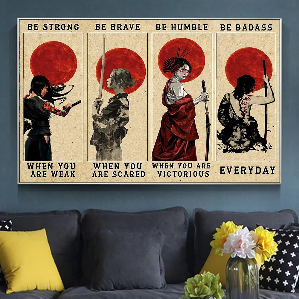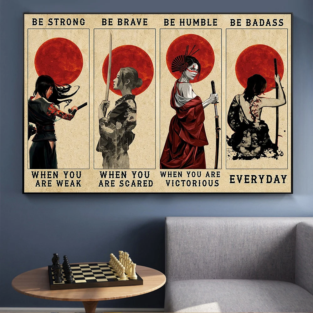 Постер Самурайской девушки, HD принты, будьте сильными, когда вы слабые, Картина на холсте, японский самурай, Настенная картина, декор для гостиной