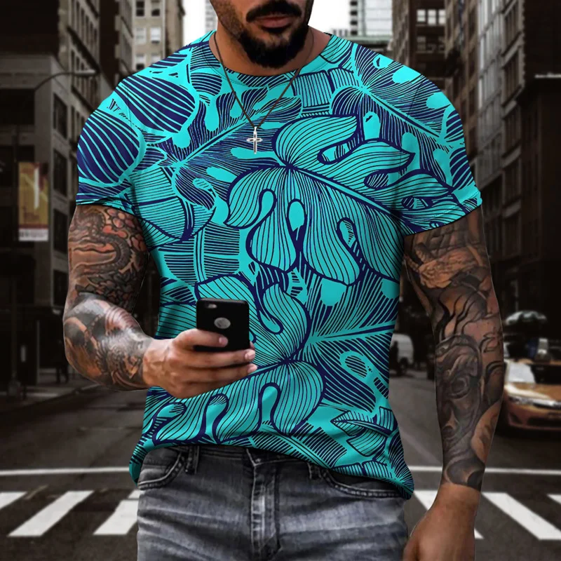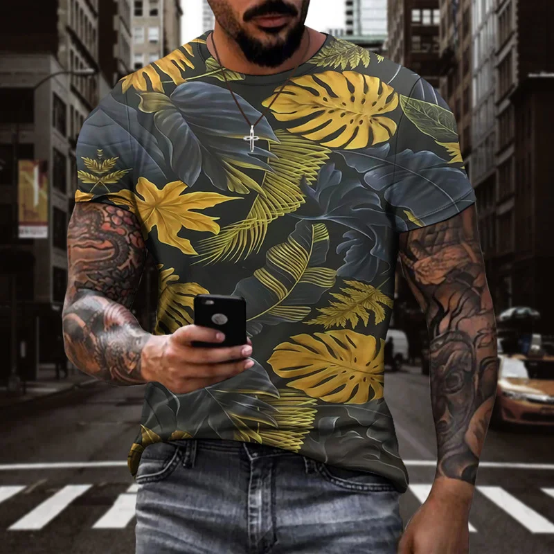 Футболка мужская с 3D-принтом тропических растений, модная тенниска...