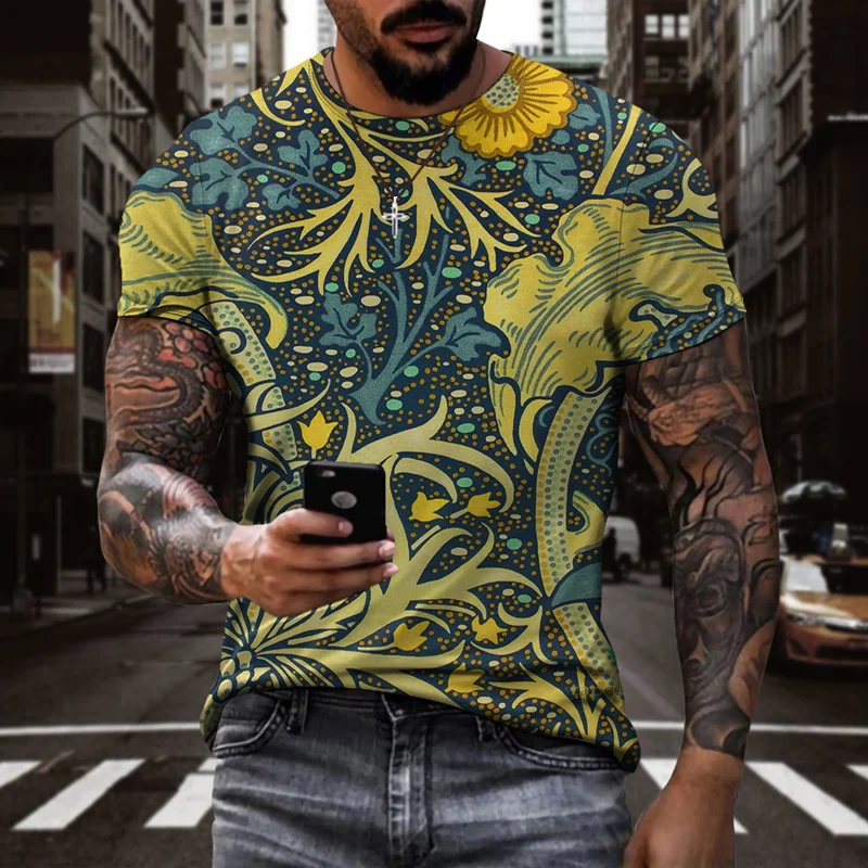 Футболка мужская, с натуральными цветами и 3D-принтом, летняя, своб...