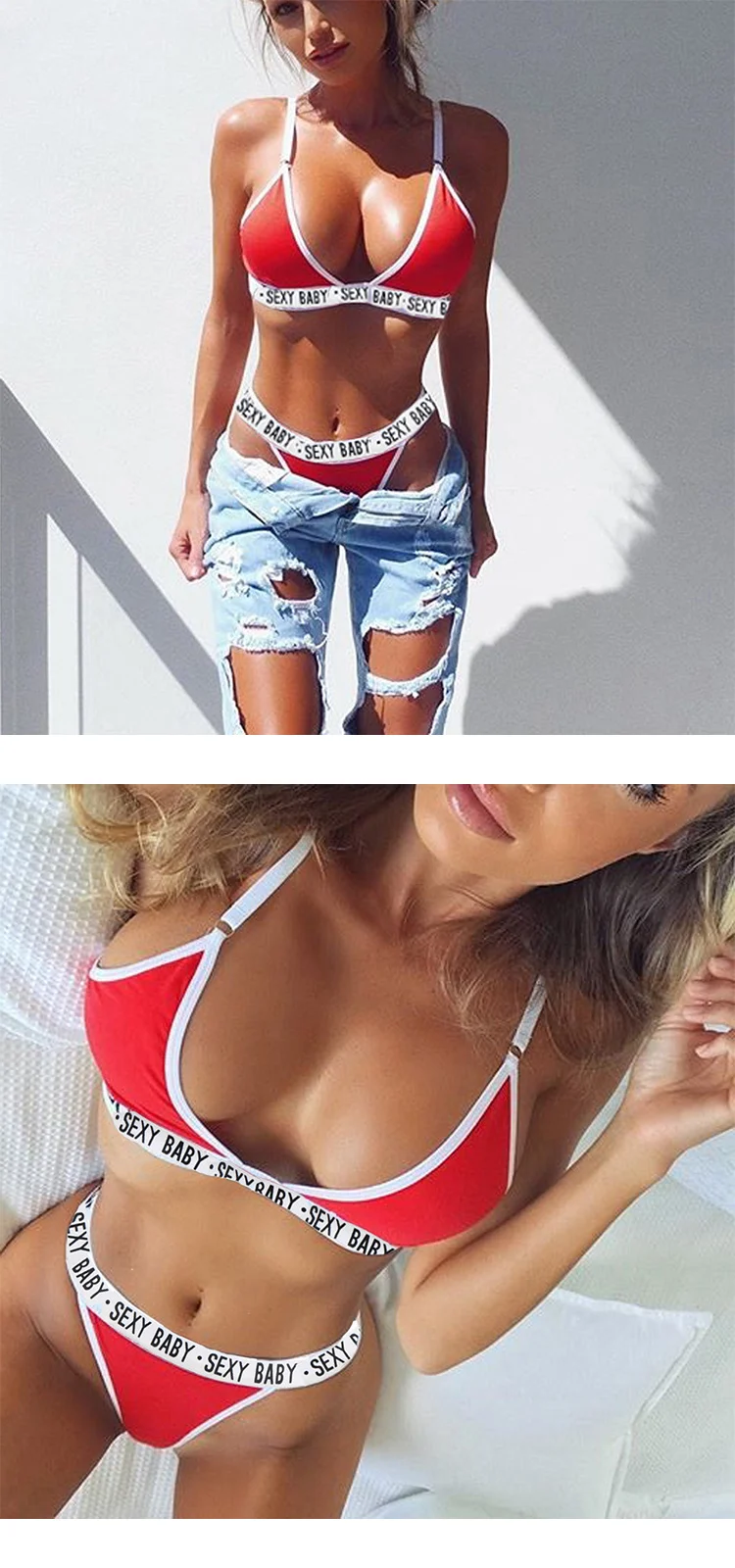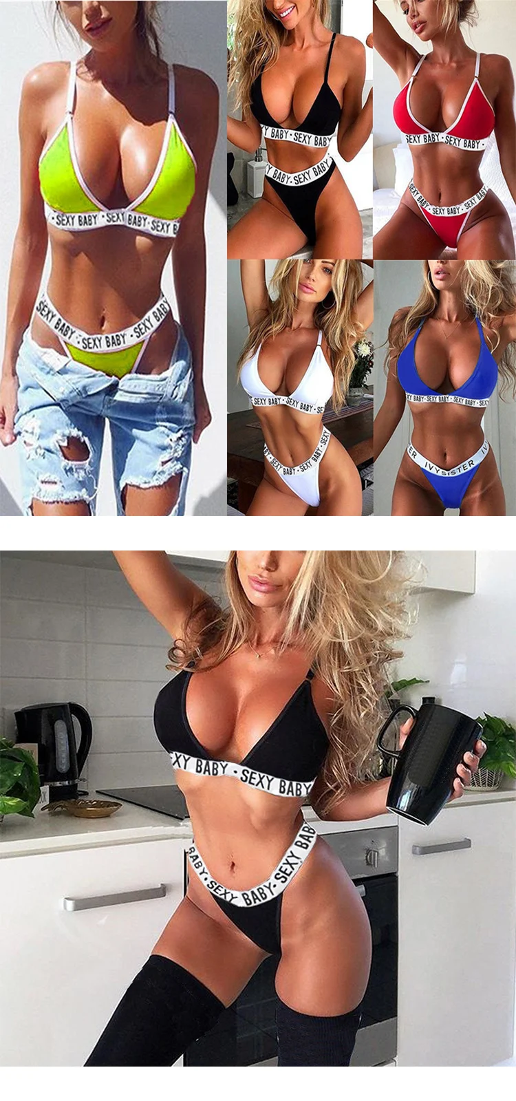 Пикантное бикини 2019, однотонный купальник на бретельках с надпись...