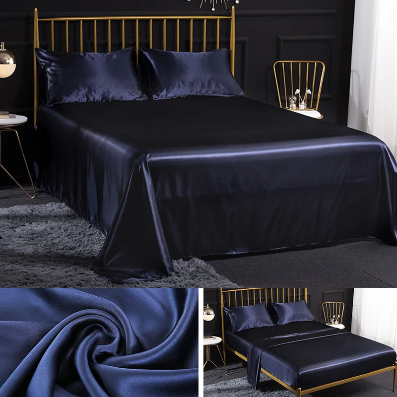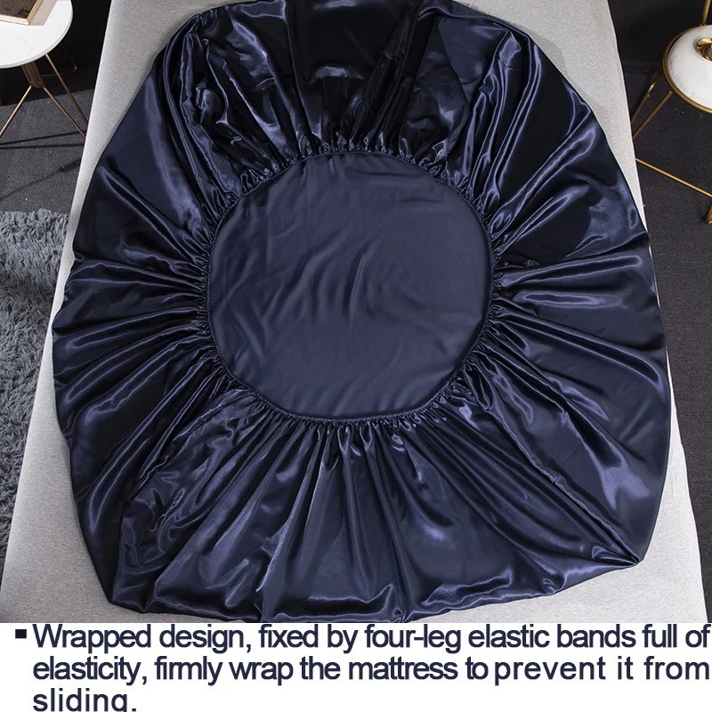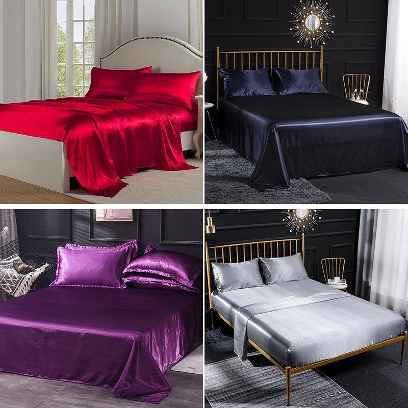 Комплект постельного белья из 4 предметов, Высококачественная атласная однотонная эластичная простыня, наволочка для односпальной и двуспальной кровати