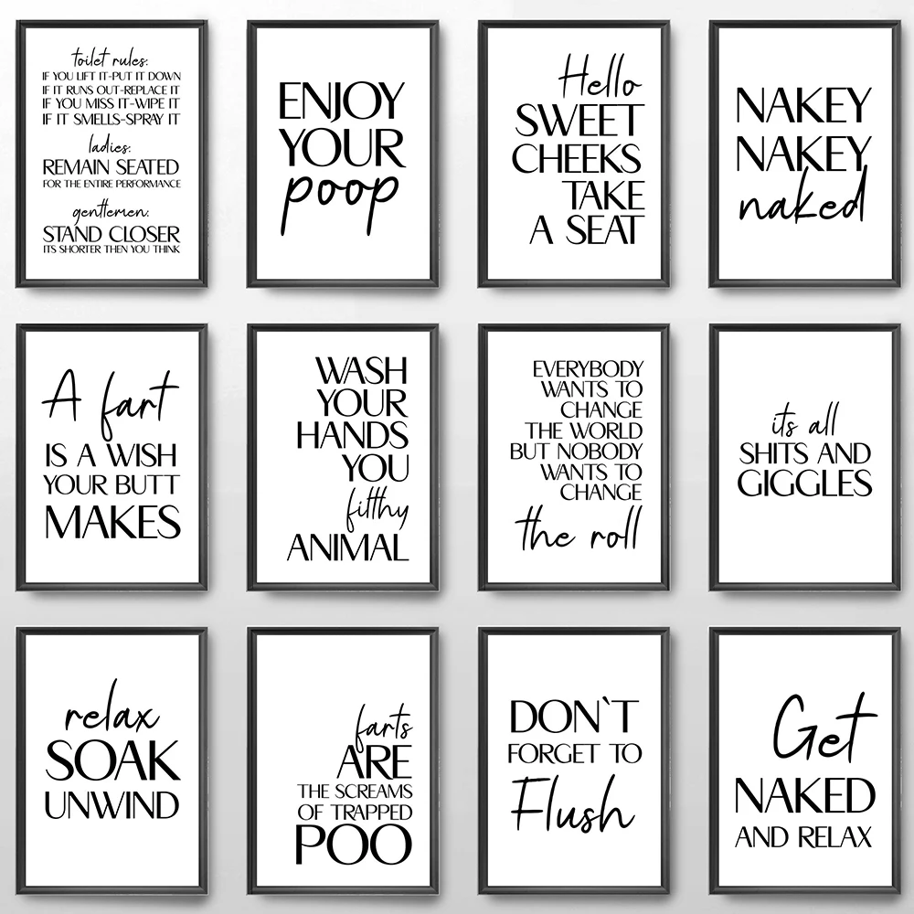 Минималистичная французская забавная Картина на холсте постер забавные правила в ванной комнаты Забавный черно-белый текст туалетный Юмор настенное искусство домашний декор