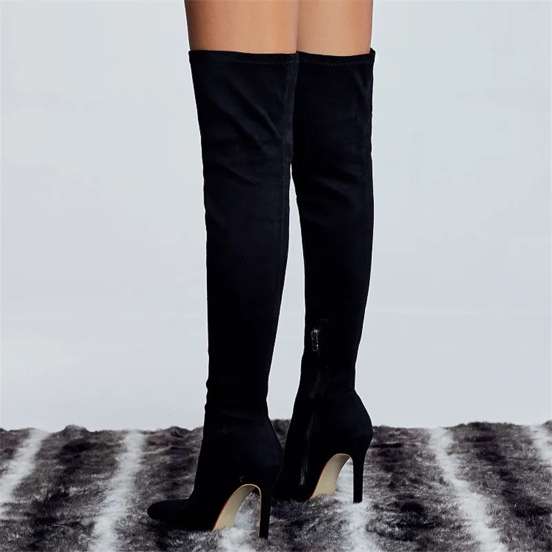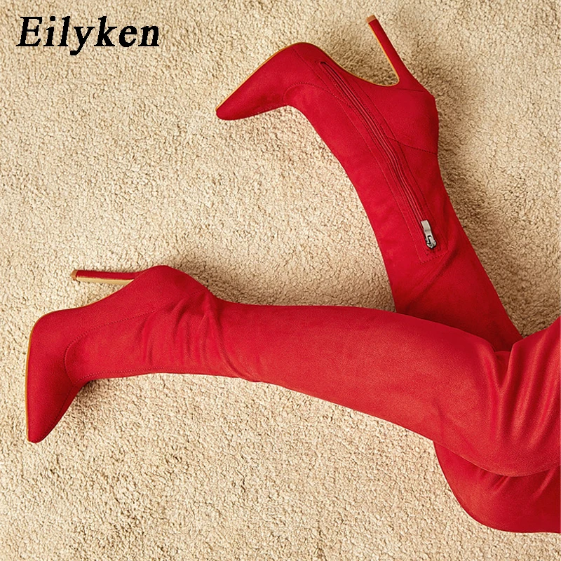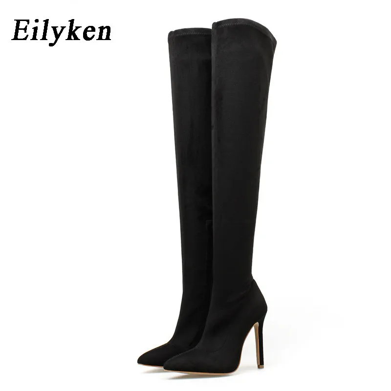 Eilykenженские сапоги до бедра с острым носком на очень высоком каблуке-шпильке; Элегантные Стрейчевые Сапоги выше колена; Сезон осень-зима; Высокие сапоги