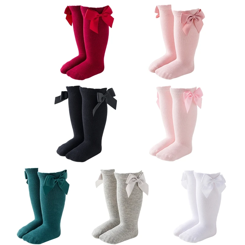 Гольфы HX5D для маленьких девочек, милые однотонные Гольфы с бантом для малышей