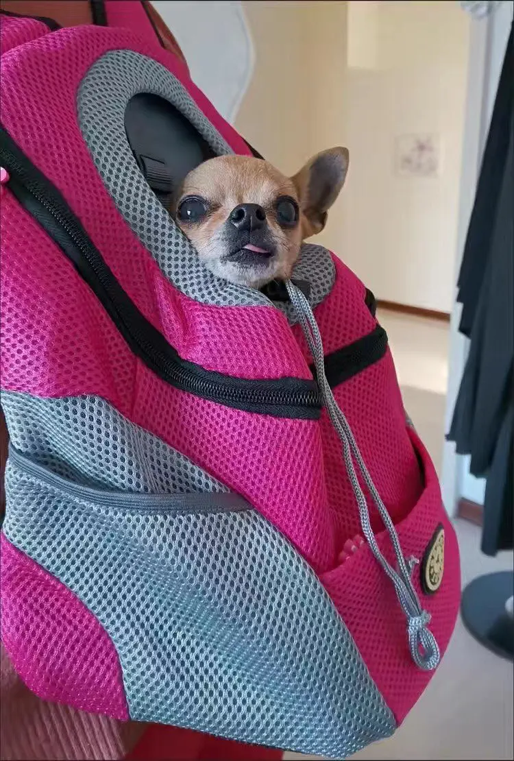 Этот пакет позволяет моей собаке удобно кататься на спине. Это как куртка для собаки с только передними ножками, и она имеет регулируемые ремни, чтобы плотно прилегать к вашей собаке.