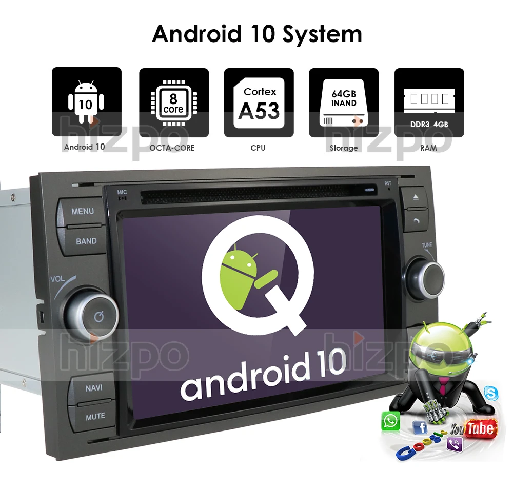 2 din Android 10 автомобильный DVD-плеер радио для Ford Transit Foc...