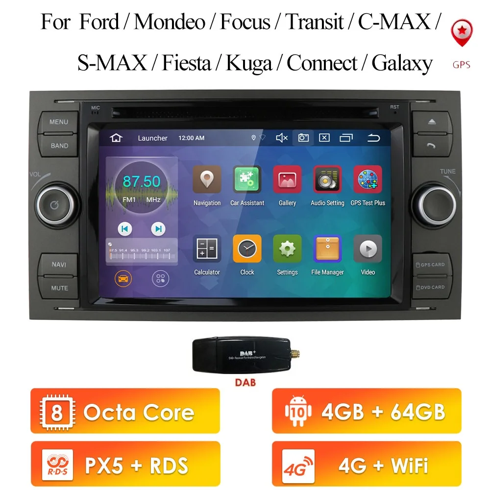 Автомагнитола PX5, мультимедийный плеер на Android, с GPS, 4 Гб ОЗУ, 64 Гб ПЗУ, для Ford Focus 2, Mondeo S, C Max, Kuga, Fiesta, Fusion, типоразмер 2DIN