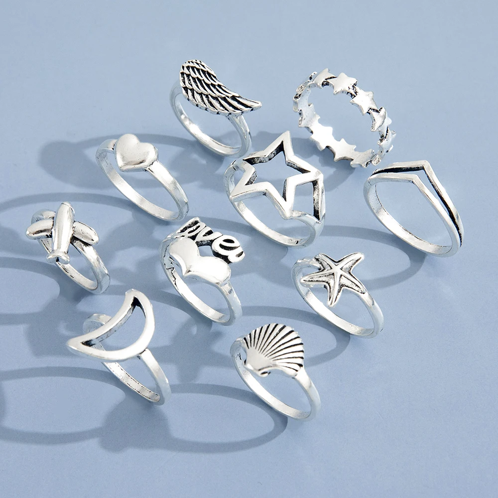Sindlan 10 шт. винтажные серебряные кольца в форме сердца для женщи...