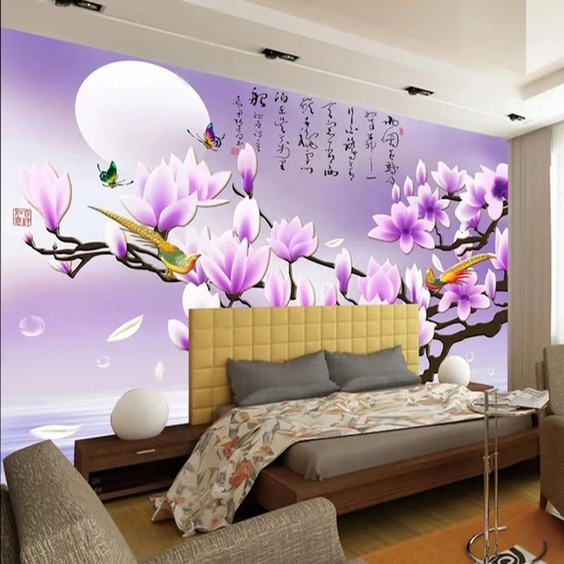 Самоклеящиеся обои на заказ, современные настенные наклейки с цветами магнолии, для гостиной, дивана, спальни