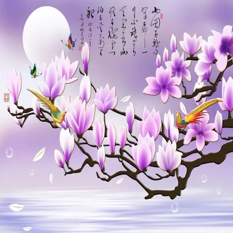 3D фон для стен с цветами и птицами на заказ, настенная бумага, сам...