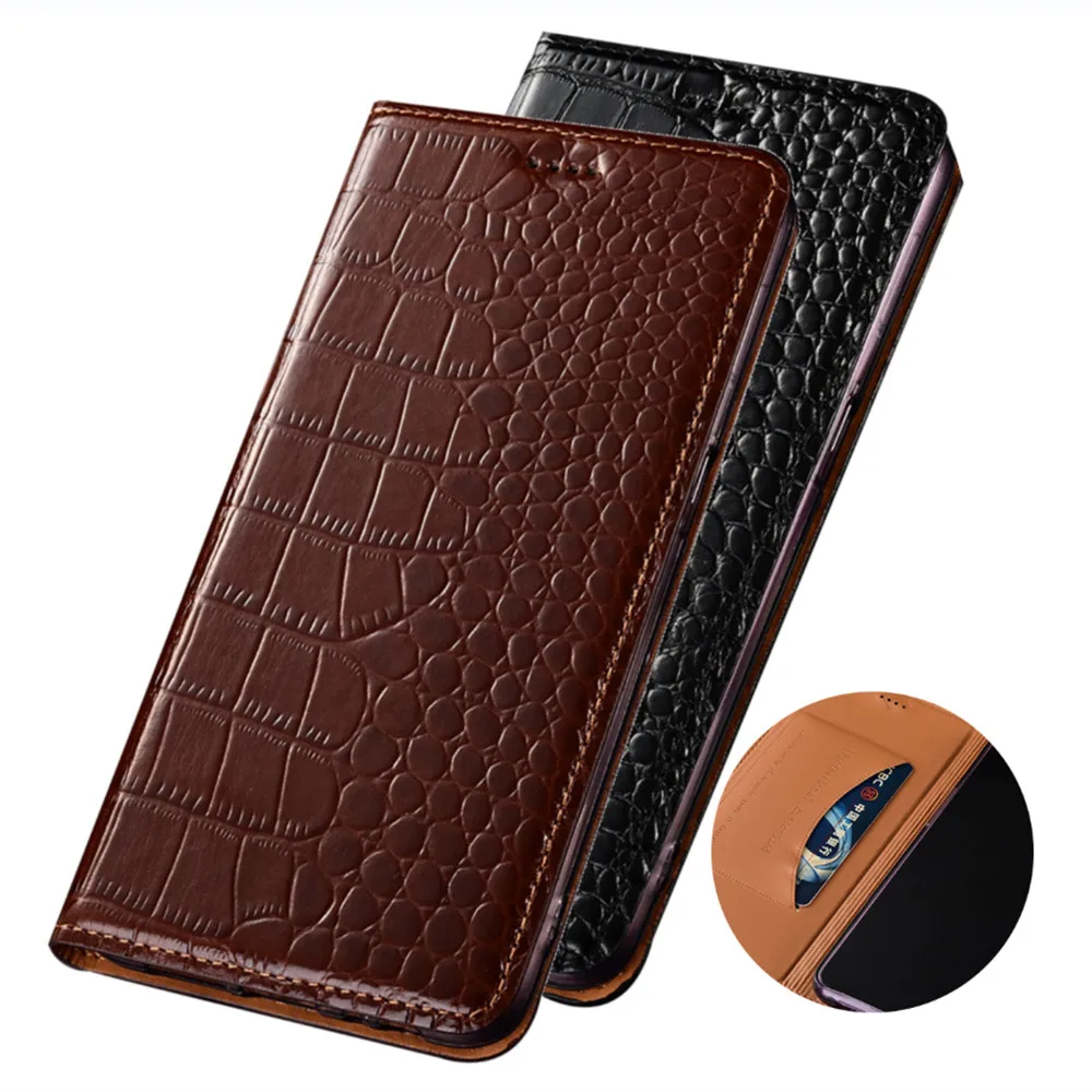 Чехол для телефона из натуральной кожи под крокодиловую кожу с магн...