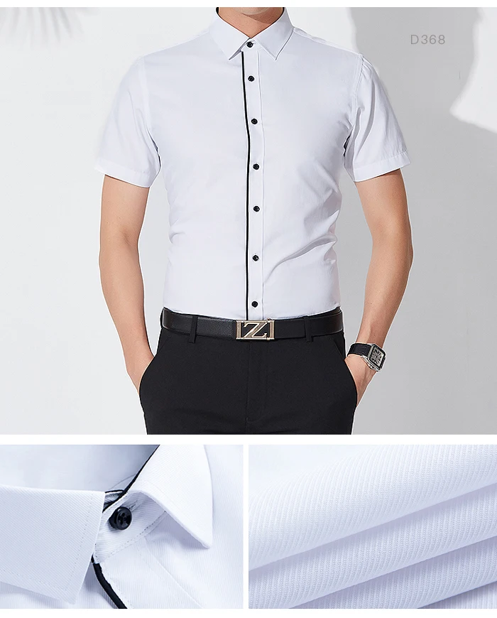 Мужская однотонная Базовая рубашка, белая формальная деловая рубашка в полоску с короткими рукавами, одним накладным карманом, лето 2019