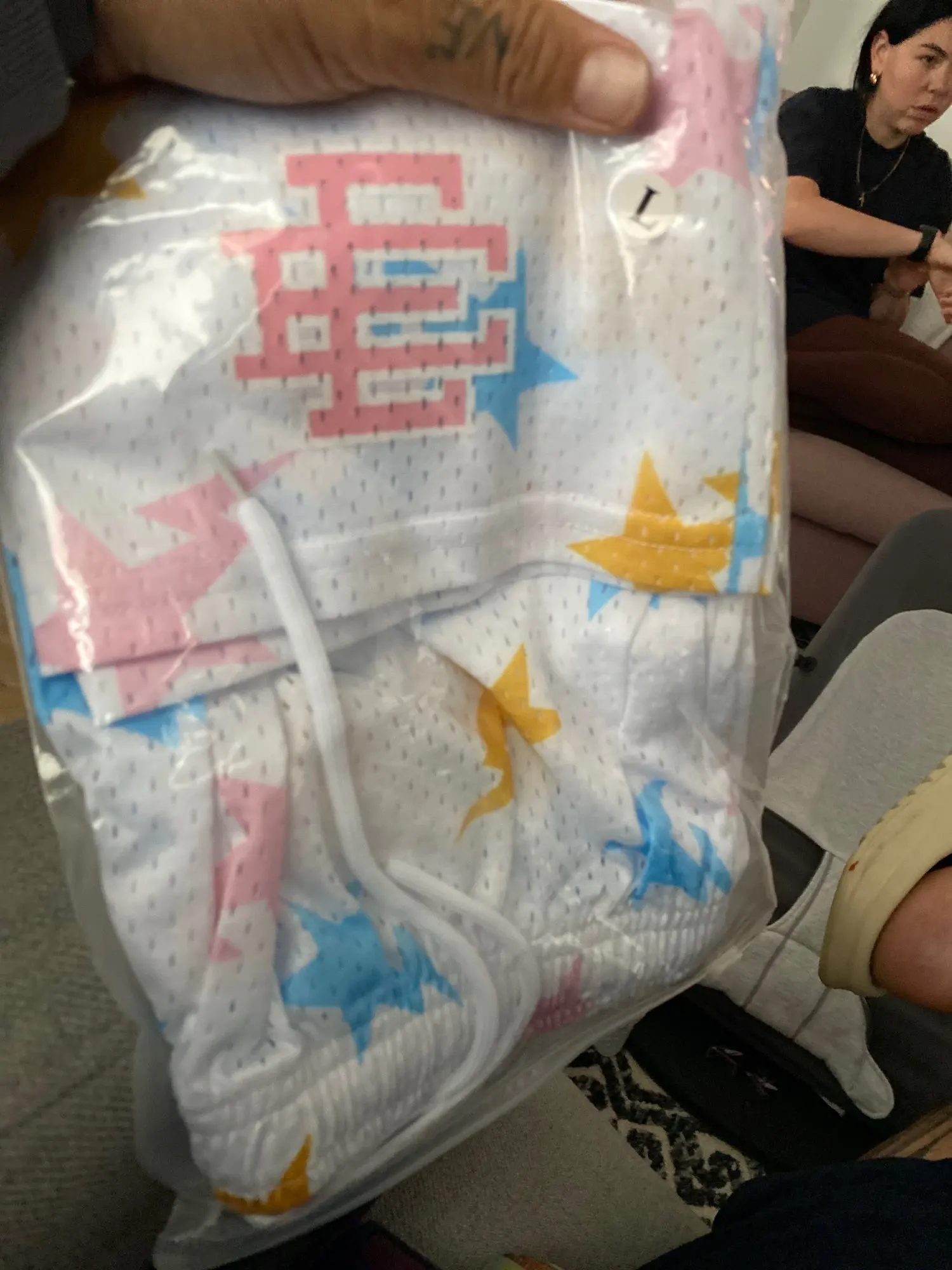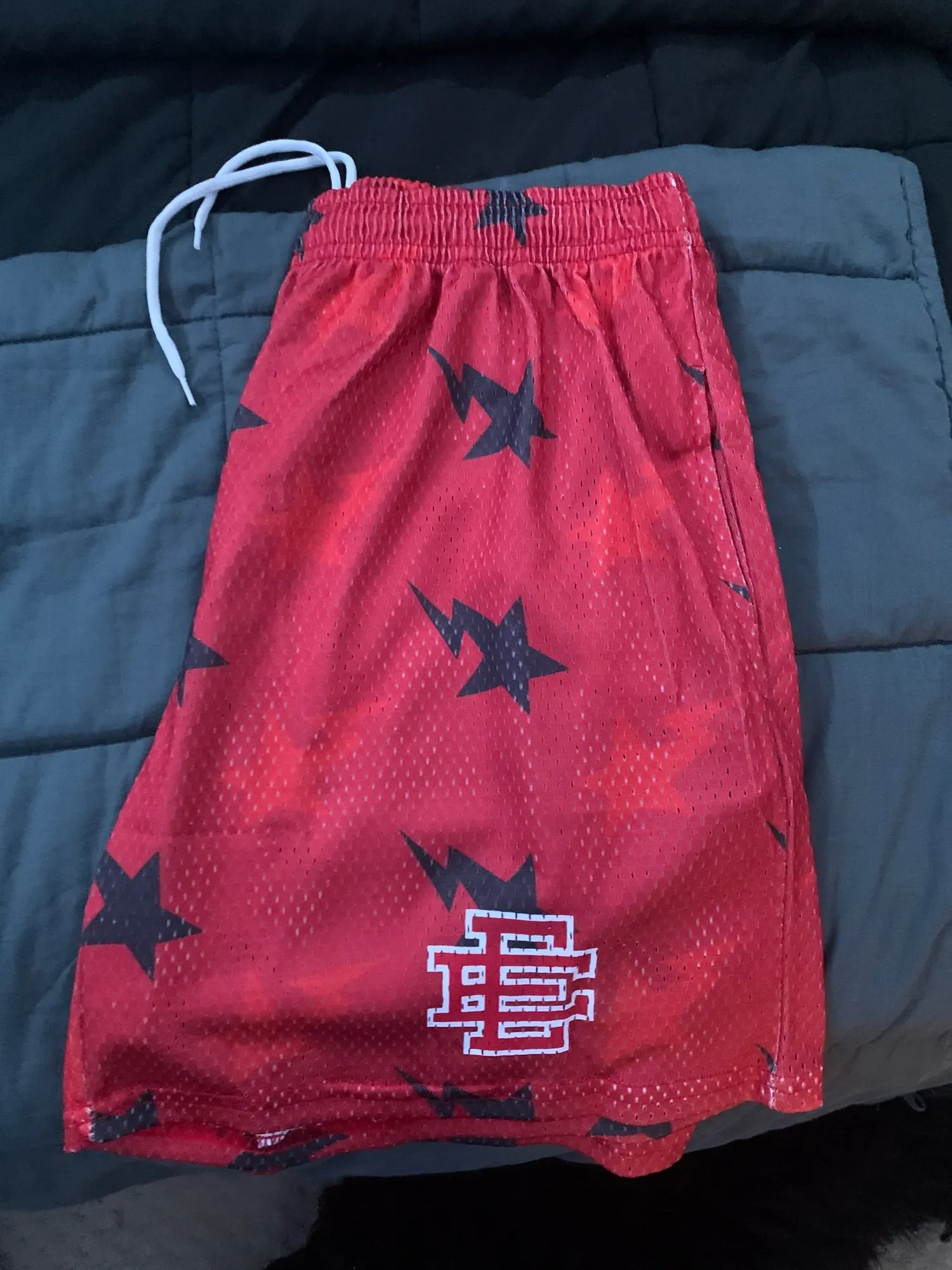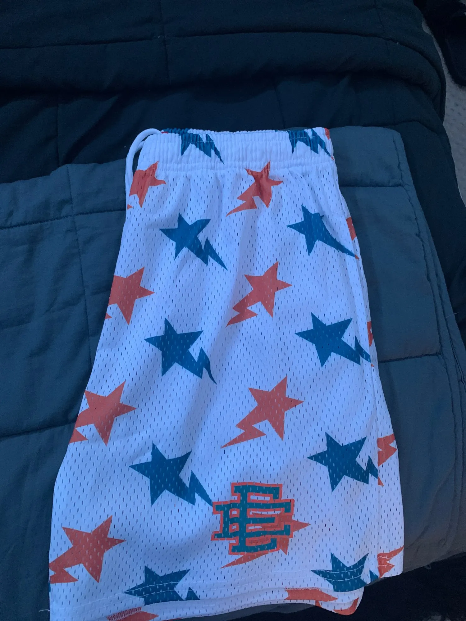 Логотип слишком маленький по сравнению с оригиналом, в противном случае все равно сетка не плохо. Если вы носите размер L в настоящих шортах EE, выбирайте размер XXXL.