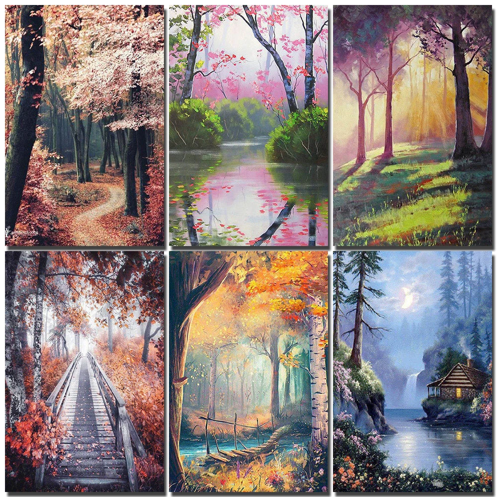 Алмазная живопись сделай сам, лето-осень, натуральный лес, полная вышивка крестиком, пейзаж, мозаика, ручная работа, вышивка, домашний декор