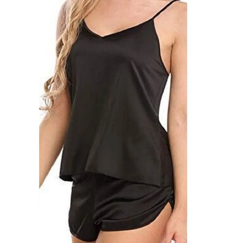 Пижама женская атласная, без рукавов, с V-образным вырезом и шортам...