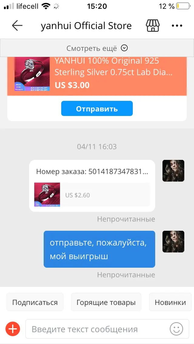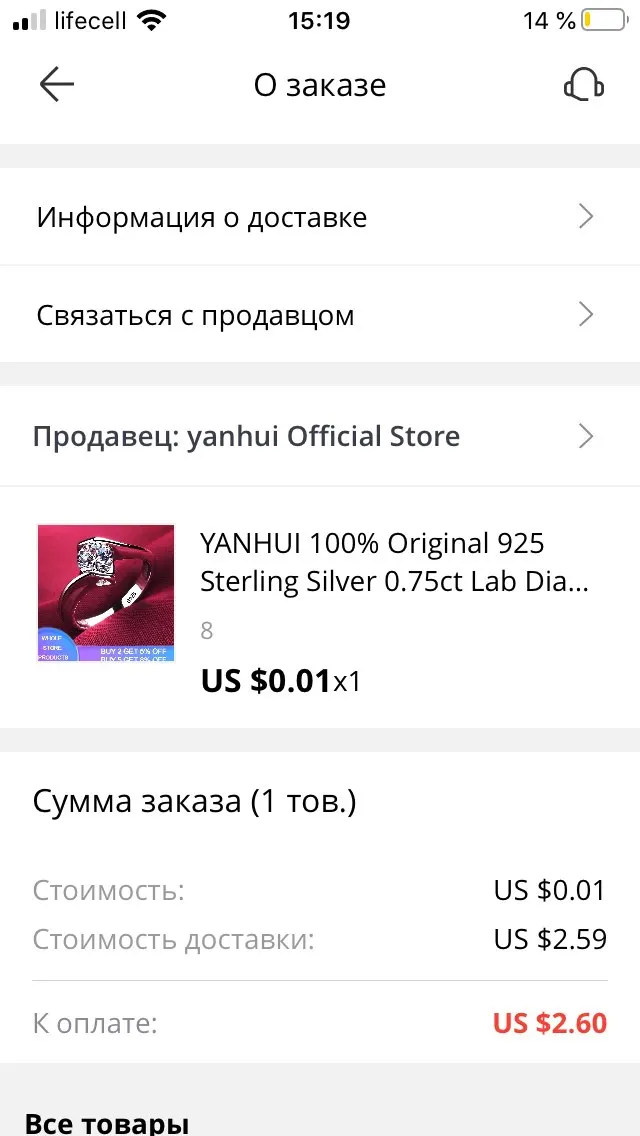 Данный заказ пришёл идеальным- все как в описании и в других отзывах. И я б с удовольствием заказывала в этом магазине другие украшения, но продавец меня не приятно удивил. Он игнорировал сообщения. Это кольцо я купила, а ещё одно через несколько дней выиграла в Халяве у него, но продавец поставил цену за доставку почти равносильную самого кольца, что как мне кажется, является обманом, поскольку он должен был быть подарок. На мои сообщения он не отвечал и так как я не стала оплачивать, заказ аннулировался и отзыв я не смогла оставить, поэтому оставляю его на другом заказе. Поэтому ставлю такой отзыв- за игнорирование и «обман»