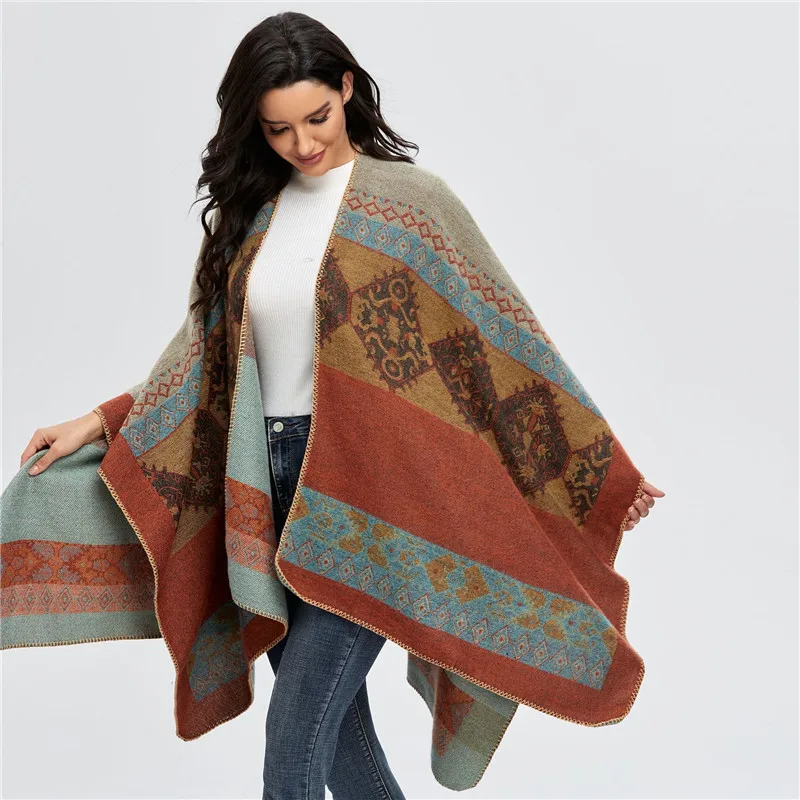 2021 Роскошные брендовые зимние теплые пончо и накидки в клетку для женщин, Большие шали, палантины для женщин, женская Пашмина