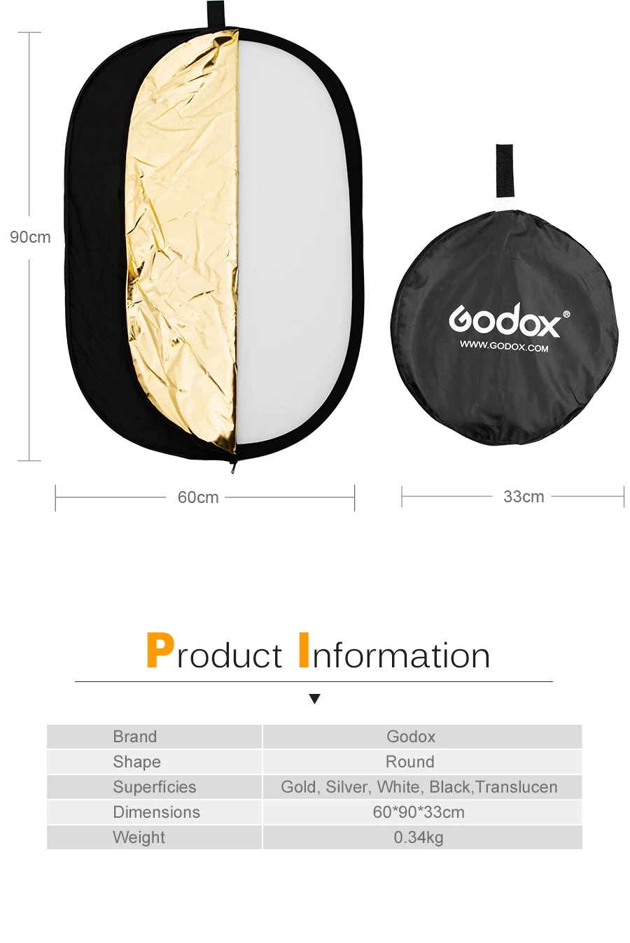 Складной Овальный светоотражатель GODOX для фотостудии, 2 в 1, 60x9...